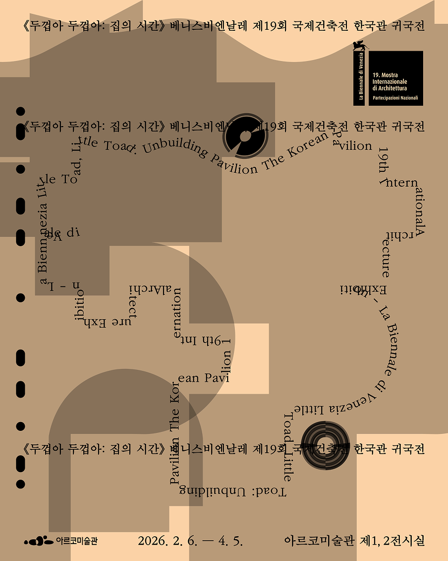 귀국전 기간 동안 아르코미술관 전시실에서 《두껍아 두껍아: 집의 시간》의 제작 과정과 귀국전의 의미를 되짚으며, 한국관 건축의 역사, 국가관 제도의 문제, 전시 만들기의 조건, 그리고 지속가능성의 개념을 다각도로 탐구합니다. 큐레이터, 건축가, 작가, 연구자, 관객들이 참여하는 이 대화들은 전시에 담지 못한 현장의 목소리와 비평적 시선을 공유하며, 건축과 전시를 둘러싼 맥락을 확장합니다.